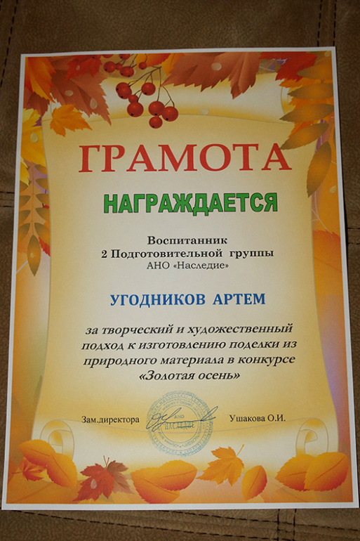 Нам, кстати, тоже грамоту дали за поделку в саду... Ванька так гордился...