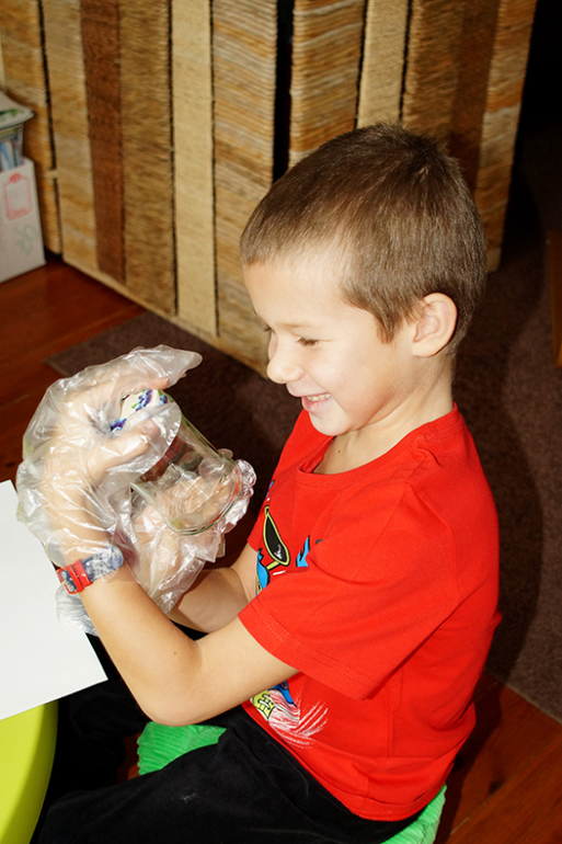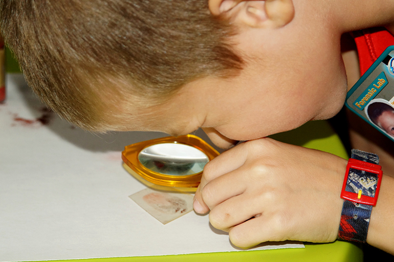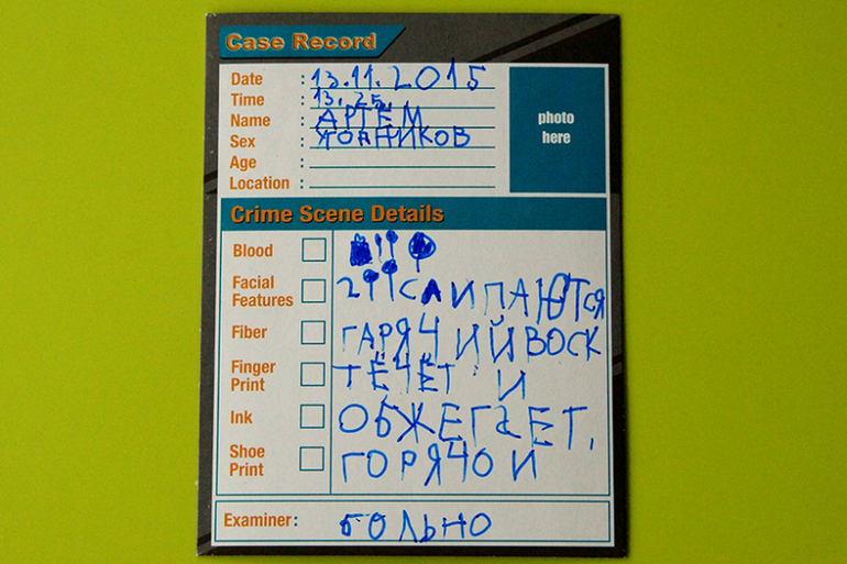 Сначала, как и полагается истинному криминалисту, Артем перчатки надел. Но в них очень было неудобно работать и как только отпечаток был обнаружен Темка их снял.