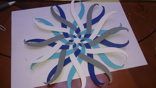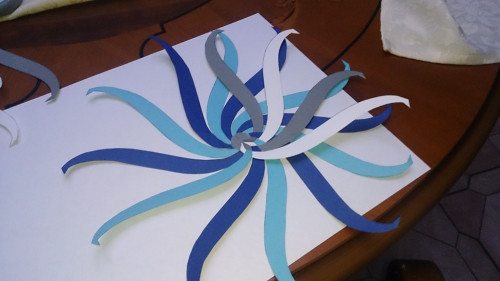 Закрепляем кружочком сверху и приклеиваем второй ряд.