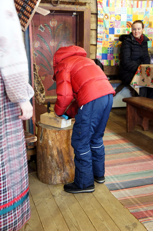 Нас усадили за столы, напоили горячим чаем и рассказали много-много всего интересного про быт и обычаи крестьян.