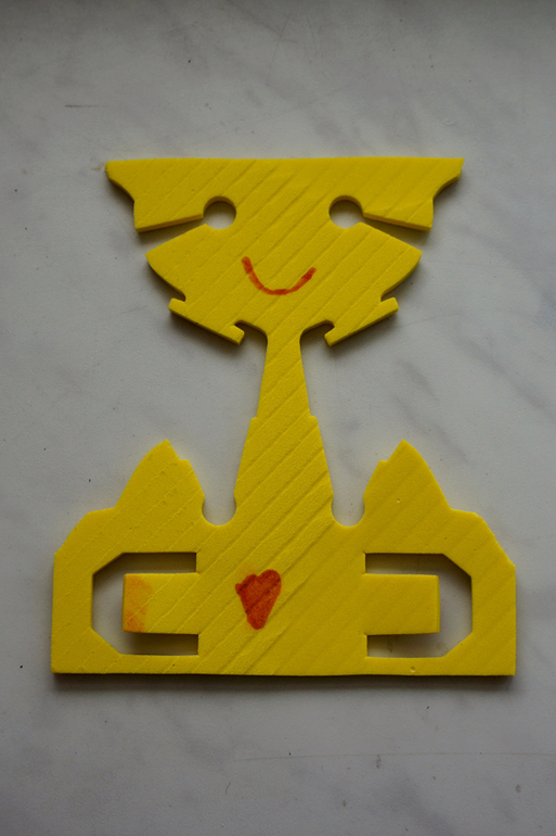 Это остатки от набора, в котором нужно было сделать мотоцикл без ножниц и клея Котобот))) Отрезал лишнее, пририсовал ротик и сердечко и подарил мне настроение на весь день.