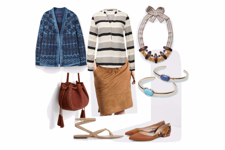 Блузка в полоску не плохая и даже с этой юбкой вроде ничего.
