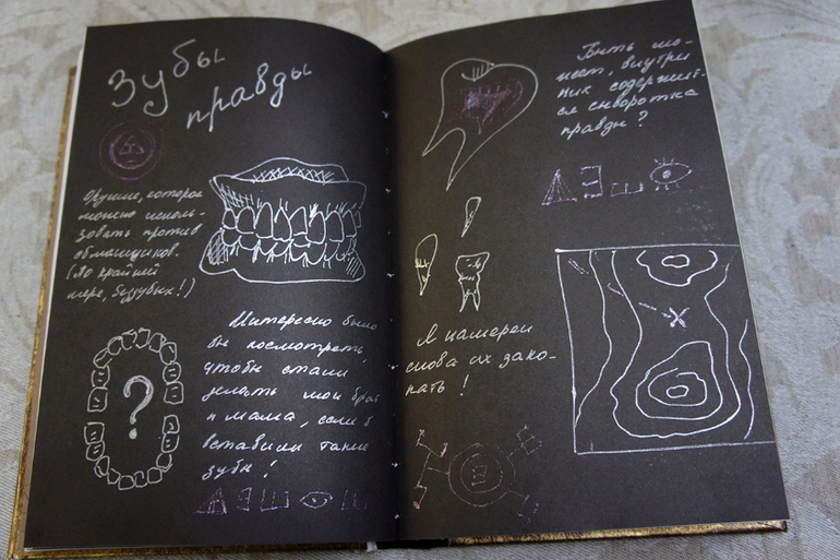 Отдельной находкой стал серебряный маркер, который пишет на черных страницах.