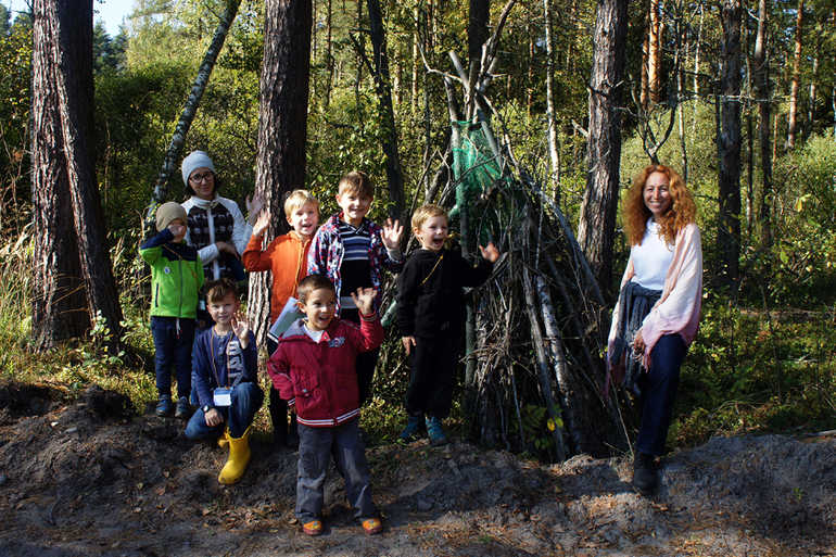 А так, у всех детей бейджики с телефонами. У моего был телефон в кармане. И ориентиров разных было много, поэтому если глубоко в лес не заходить потеряться почти не реально.