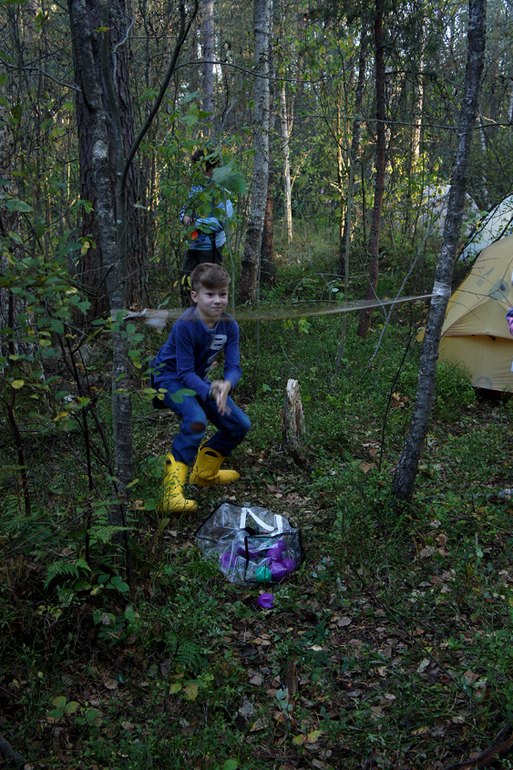 Но потом узнали, что два клада спрятанны практически у нас под носом у нашей стоянки (дети с маршрутами бегали около нас). Тогда эти гаврики пошли и сами нашли эти клады))) Порыскали там и, выбрав еще по вещичке, положили взамен свои.