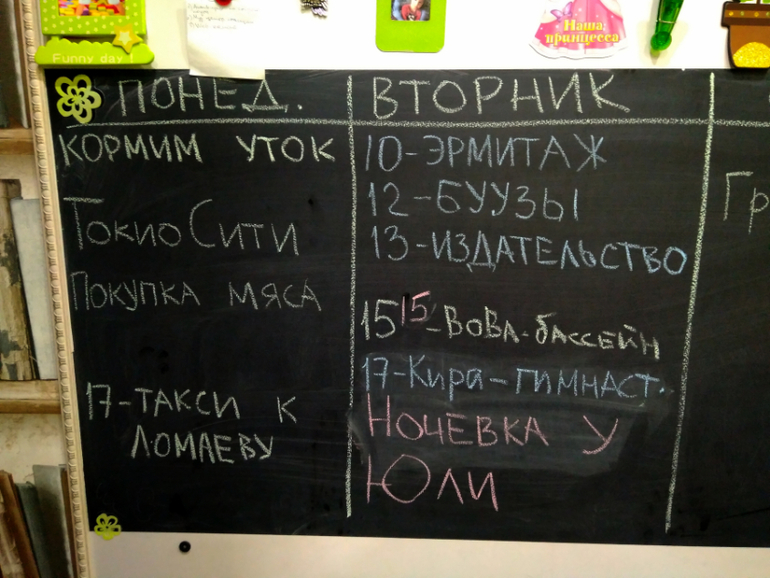 Мы пытались максимально вписаться в детское расписание. Потому что у нас каникулы, а у Вовчика нет. Мы учимся по триместрам, а он по четвертям.