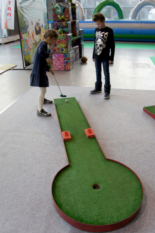 Но если в гольф ребята били по очереди. То тут, попробовав пару раз, Каролина сказала что бить будет Артём, а она будет собирать птичек, чтобы успеть побольше бросков за три минуты.
