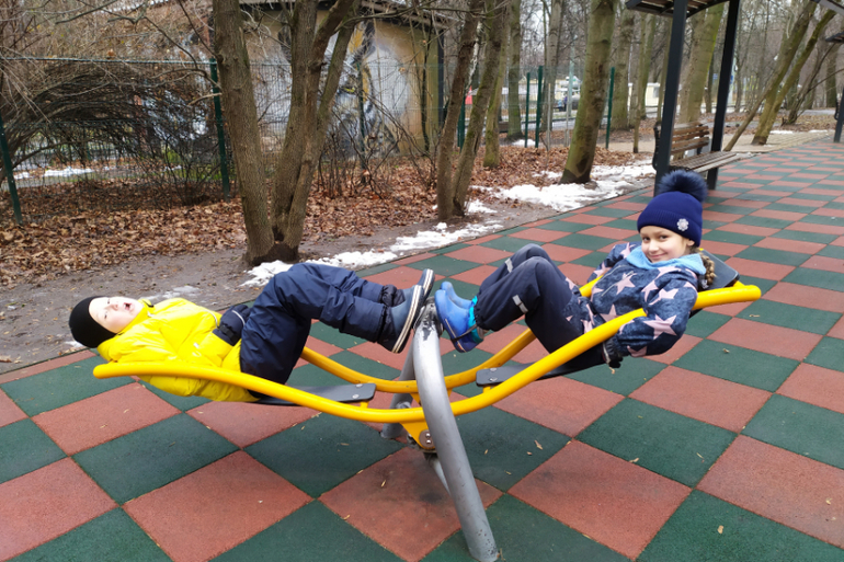 Прошли несколько площадок и в итоге остановились на понравившейся больше всего. Дети играли, я сидела на скамейке.