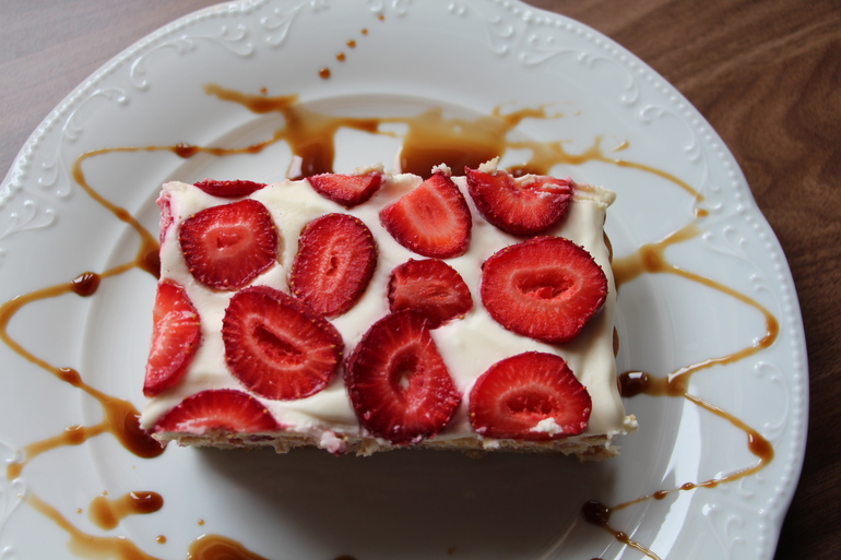 Мой любимый торт из клубники. Нежный вкус, напоминающий мороженое. Исчезает со стола также быстро, как и готовится:) Балуем своих домашних!