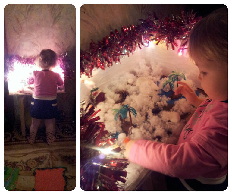 А перед сном мы разыгрывали зимние сказки в нашей зимней коробочке.