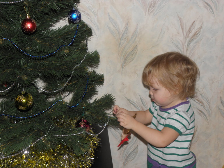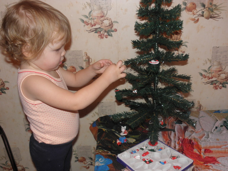 Украшали квартиру, нарядили ёлку, а у Кати была своя маленькая ёлка на кухне которую она могла вдоволь наряжать и опять снимать все игрушки до бесконечности)
