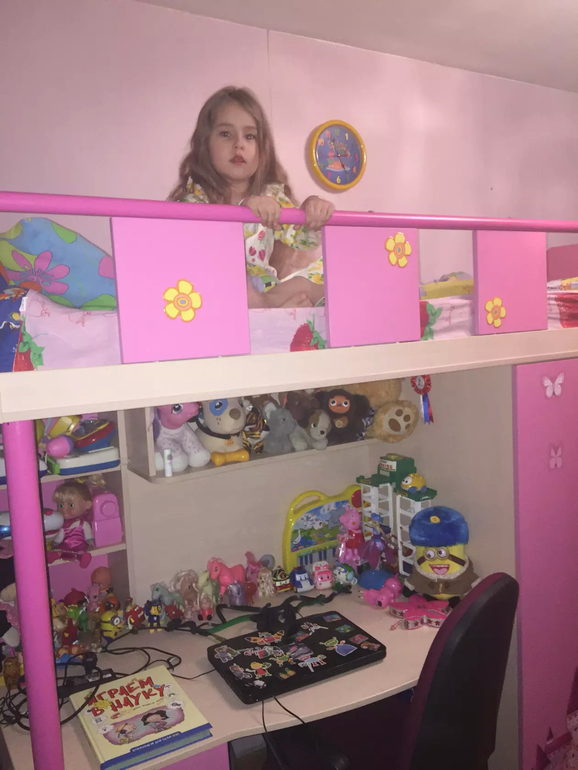 купили кровать, которую так просила доча, теперь мне страшно спать, вскакиваю на малейший шум, бегу к девчонкам в комнату, боюсь, что будет вставать и свалится((((