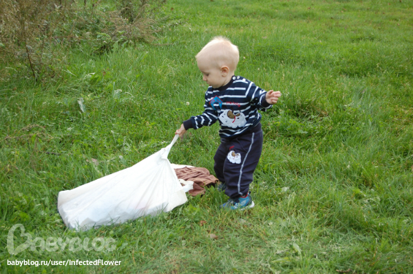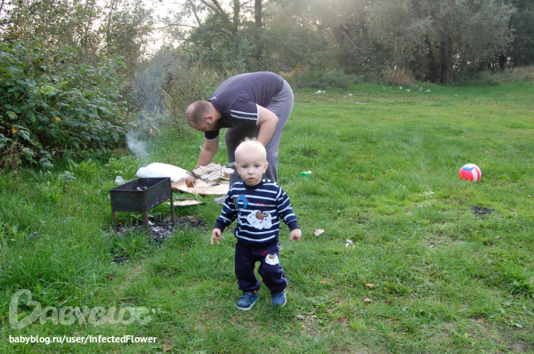 Пытается мангал утащить)))))) Тяжела, видно, ноша...