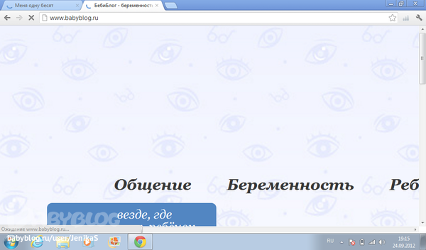 Фон ленты-мишки, а вот фон главной страницы( если кликнуть на крупный логотип БЕБИБЛОГ)-там глаза на синем фоне.