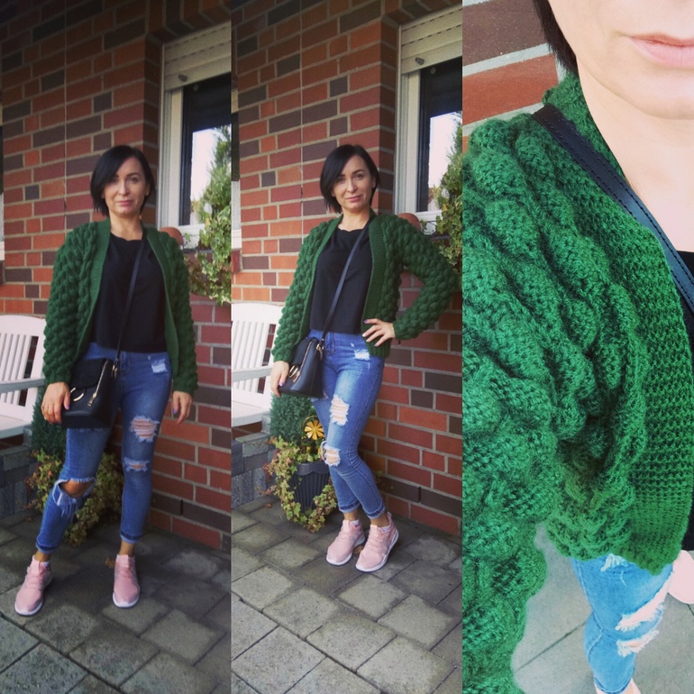 Давно не писала)Похвастаюсь вязаным бомбером от мастерицы из России)