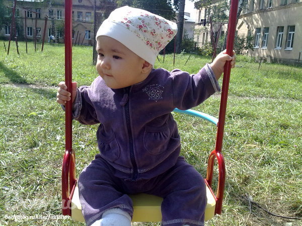 Любим мы на качалях качаться.Начали где-то с 6 месяцев покорять это дело, даже домой пришлось купить качели)))))