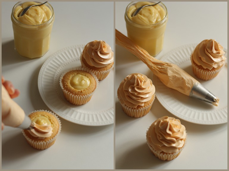 Делюсь рецептом зимних, предпразднечных или празднечных), вкуснющих апельсиновых капкейков, с ароматным курдом и c шёлковым белково-масляным, на апельсиновом соке, кремом.