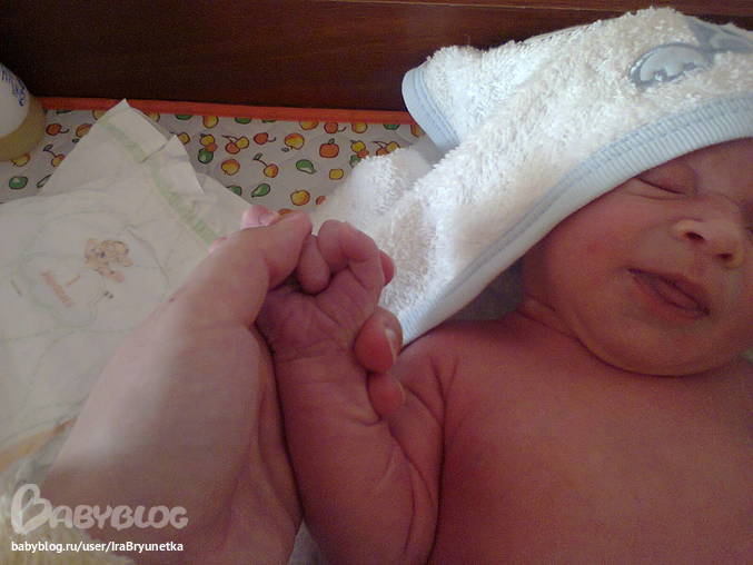 Вчера вечером и сегодня утром пробежалась я с Ариком по рефлексам.Больше всего понравились "шаги".Это так забавно!Взяла его под ручки и поставила на пеленальный столик.Он выпрямился,уперся ножками в поверхность и сделал парочку движений.Держать такую кроху конечно пока не совсем удобно,но эмоций приятных много.По всем остальным рефлексам тоже хорошо.За предмет,вложенный в ладошку,хватает(довольно крепкие у маленького руки кстати),при касании внешней стороны стопы пальчики растопыривает,"плавательные" движения лежа на животе совершает,на хлопающую дверь соответствующим образом реагирует и т.д.Записываю все это,чтобы потом сыну рассказать!)А сегодня рано утром,перед кормлением произошел один сентиментальный момент))Разбудил меня Арик,чтобы подгузник поменяла.Сделали мы все,а он ротик открывает,язычком водит.Поняла,что сейчас кушать будем.Положила его на кровать себе под бок,приобняла и вижу в полумраке(часов 7 было),что Арюшка смотрит пристально на меня и улыбаааается))))Так мне хорошо стало!!!А после обеда началась обычная свистопляска...Поясню.При всей моей безграничной любви к животным-НАДОЕЛА уже соседская собака с верхнего этажа!((Они ее на целый день одну дома оставляют,и бедная зверюга изводится.Воет пока не устанет.Но если вдруг закричит Аристарх,то начинается оркестр!Она ему "подпевает"...Может из сопереживания?Не знаю.Но вместе они отрываются на всю катушку.А еще у сына как-то увеличился к концу месяца объем срыгивания,и решила я вчера почитать что-то на эту тему.Как всегда-полное расхождение мнений у специалистов.Где-то пишут,что,с увеличением объема потребляемой пищи,объем срыгивания тоже увеличивается и все вполне естественно!Эта версия показалась мне наиболее оптимальной в нашей ситуации.Где-то пишут,что это признак переедания(маловероятно)и избытка молока в желудке,а где-то,что ребенок торопился употребить пищу,т.к. был очень голоден и боялся,что не успеет удовлетворить свои потребности(как по мне-совсем бред!)...Мда!Ну и какому доводу верить?Будем пока верить материнскому чутью.