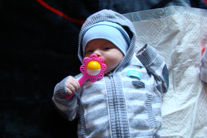 Вот так нежданно оно и случилось!))Заметили мы появляющиеся зубки Арика уже по явным признакам.Стал ребенок плаксивым(чего раньше не наблюдалось),особенно вечерами,повадился в рот тянуть буквально все,и слюна сильно густая начала выделяться...Я обычно в рот к сыну из праздного любопытства не лажу,но тут был особенный случай.Проверить решила.Конечно не ждали мы,что так рано все начнется.Десны в месте прорезывания побелели и набухли сильно.А сегодня я ездила на консультацию по введению прикорма,и врач мне все подтвердила.Сказала,что процесс идет полным ходом.Теперь гелем мажу котькины десны,чтобы облегчить это состояние.Прорезыватели не очень помогают.Интерес к ним у Арюшки быстро угасает,и в ход снова идут свои или мамины пальцы.А мои он в особенности кусает довольно крееепко.Чувствуется,что чешется сильно...Врач нас сегодня взвешивала и рост измеряла опять.Чтобы определить-начинать ли прикорм.Весим мы 6700.А вот рост уже 65(после 61,5 в 3 месяца).То-то я заметила,что очередной комплект одежды переросли,успев одеть раза 2.С завтрашнего дня Арюшка будет пробовать свою первую кашку!)))Так смешно.По маленькому тесту ложечку мы уже воспринимаем у себя во рту нормально.А вот понравится ли вкус?))Из предложенных видов каш я выбрала гречневую.Сама ее не люблю,но пользы в ней много.Проверим реакцию завтра.)А через 10 дней,если все пойдет хорошо...добавим овощное пюре.А еще сынок все чаще "просит",чтобы я помогала ему сесть.Совсем не в моготу ему лежать уже.Тяну его за ручки и грешу тем,что все чаще задерживаю Арика в этом положении.А он доволен!Визжит,смеется и...ведь держится-то очень хорошо.Вот массаж у нас состоится совсем скоро долгожданный.Там и спросим у специалиста-готова ли наша спина к подобному?Но желание у котьки сильное