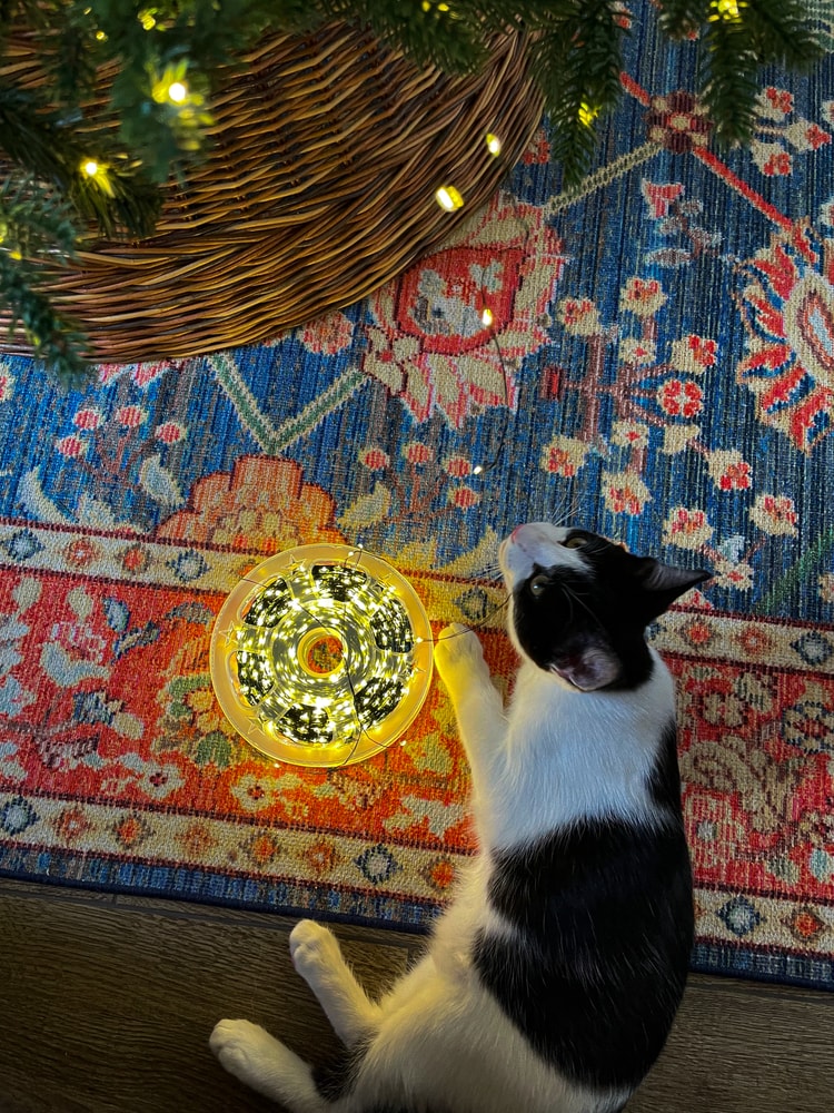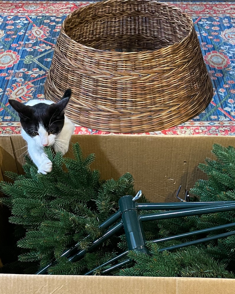 Я на ёлке ветки раздвинула а там на ветках ближе к центру кот лежит и веточки грызть пытается... Как они его выдержали не понятно...И его кстати видно если нормально посмотреть, но я со страху и сна вобще ничего не сообразила😆