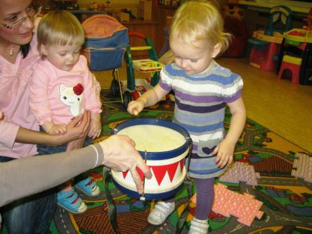 С детишками, помимо воспитателя, занимаются психолог и музыкальный работник. Занятия - минут по 7 - танцы, лепка, рисование, что-то типа ритмики...