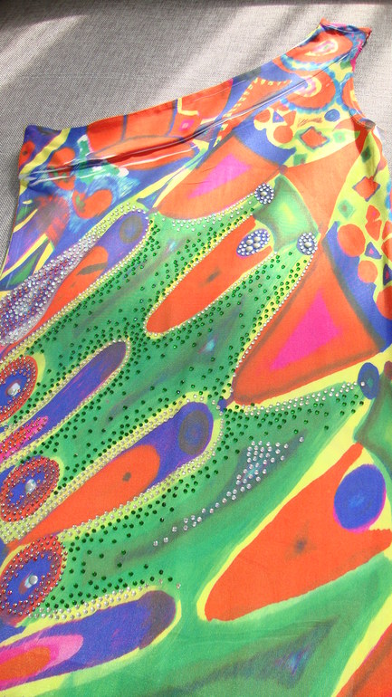 1. Летнее платье. Невероятной красоты. размер 42-46, тянется, ткань спандекс, украшен стразами. Одевалось 1 раз в отпуске. Цена 2500 (покупала за 4200)