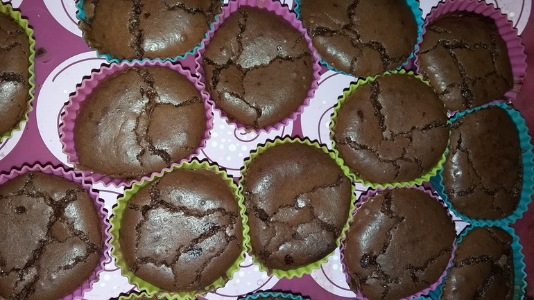 Шоколад растапливаем с маслом. Добавляем сахар, муку. И постепенно яйца, по одному, взбивая. Потом оставить на пол часа, но я редко оставляю. Затем налить в формочки, но не до краев - где-то 2/3. Выпекать 30 минут.