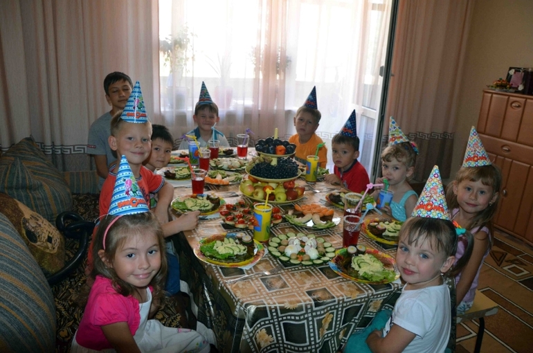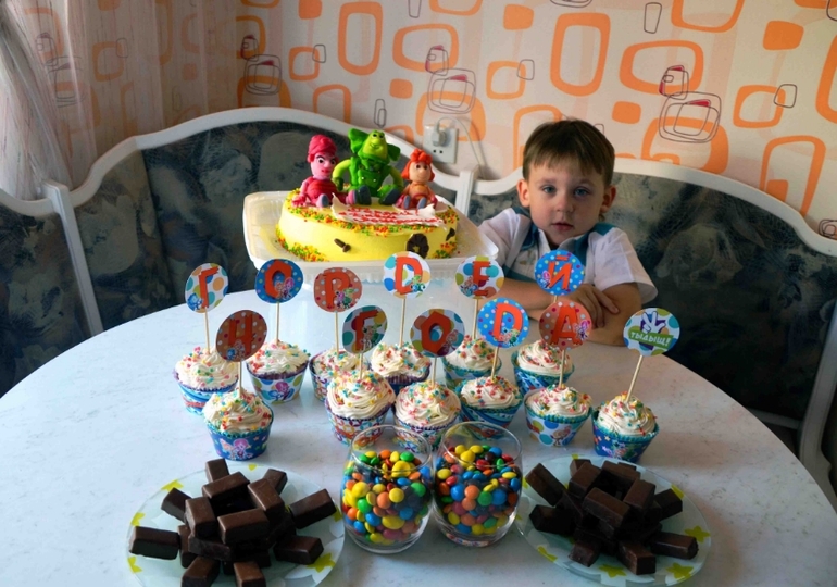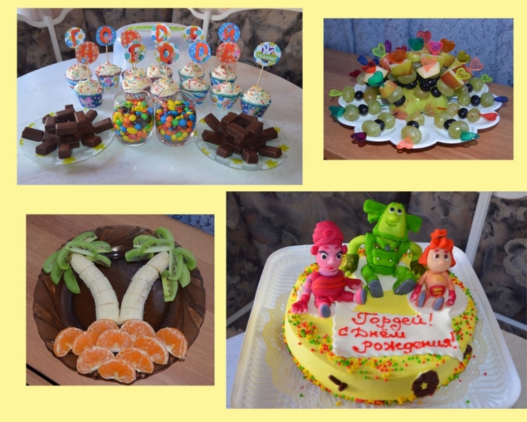 День рождения было решено отмечать только с детками и их мамами (потом все перешло в дивишник из мам с присутствием коньяка). Отмечали 31 августа, т.е. в тот же день, в который родился Гордей.