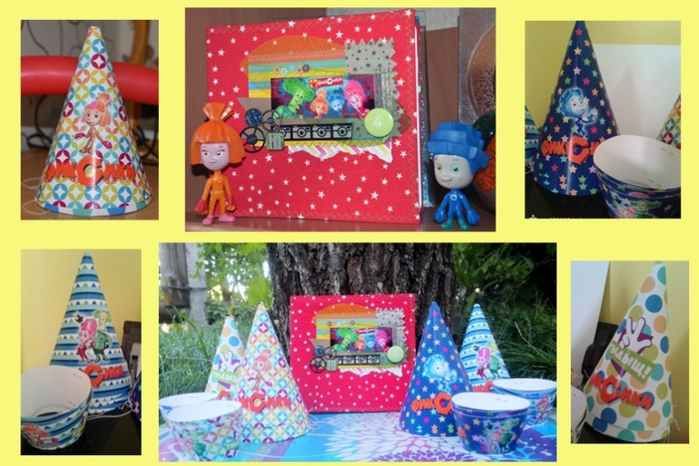 В стиле "фиксики" были и колпачки, и юбочки для капкейков и буковки для надписи "Гордей 4 года!". Помогла мне в этом наша замечательная Викуся А еще она сделала нам чудесный подарок, книгу пожеланий! Спасибо тебе большое!!!!! Вот ее творение: