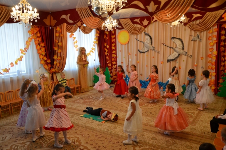 Как все красиво, и зал в саду такой уютный. У нас тоже будет утренник посвященный осени. Дочку выбрали Осенью. Сейчас наряд выдумываем, обязательно хотим венок осенний:)