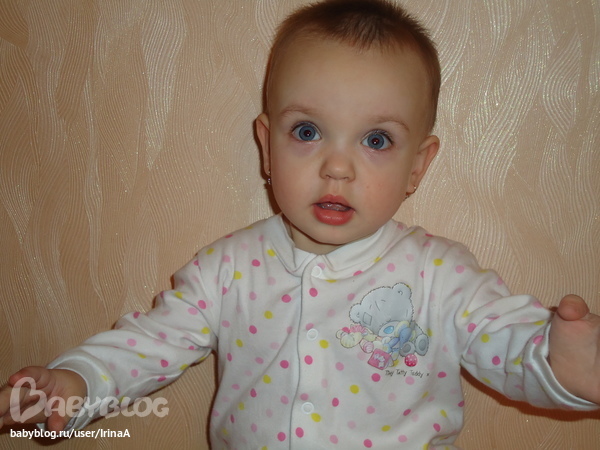 Научилась прыгать на месте, теперь скачет как коза))) Знает как говорят и как выглядят почти все животные, знает где правая/левая рука/нога, иногда угадывает цвета.