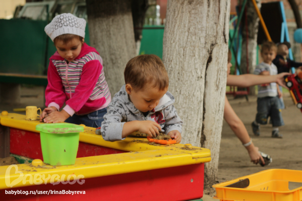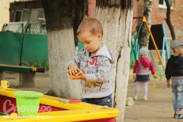 Это первые дни в саду! Сосредоточен не то слово! Вообще, оч любит возиться в песке!