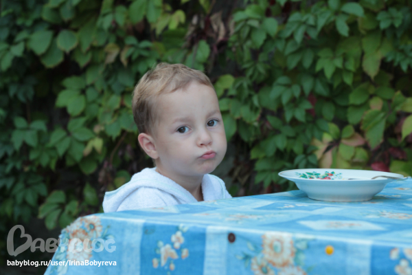 Любит, как настоящий мужчина борщ (к сожалению, едим редко - сыпет на него) и овсяную кашу! И ни дня без молока! Это святое!