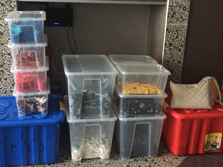 мы недавно тоже начали так сортировать Лего.. в такие же контейнеры))))) но еще надо большие докупить тк много чего пока по шкафам свалено в общую кучу... А чего сын сам не разбирает?