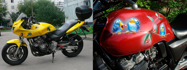 Расскажу немного о своем хобби. Рисую я всю жизнь. В 3D, flash-е, на холсте, бумаге, на машинах, на стенах.. Где попало вообщем. И чем придется. Но есть такой волшебный инструмент "аэрограф"- он умеет чудесно преображать давно знакомые и скучные предметы. (мне в рекламу надо податься))) Вообщем хвастаюсь