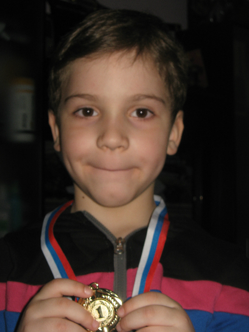 соревнования по каратэ состоят из 2 частей - ката - это стиль выполнения элементов и кумитэ - бой... Ката нас не вдохновляет, хотя, я ему и объясняю, что без знания ката не будет правильного кумитэ.. И на ката мы были первые в нашей возрастной группе, растерялся, перезабыл все, вплоть до поклона... ну да ладно, это ж впервые в жизни были соревнования, поэтому.. будем работать дальше.. а вот в бой шел напролом... и выиграл... первое место среди шестилеток наше!!!