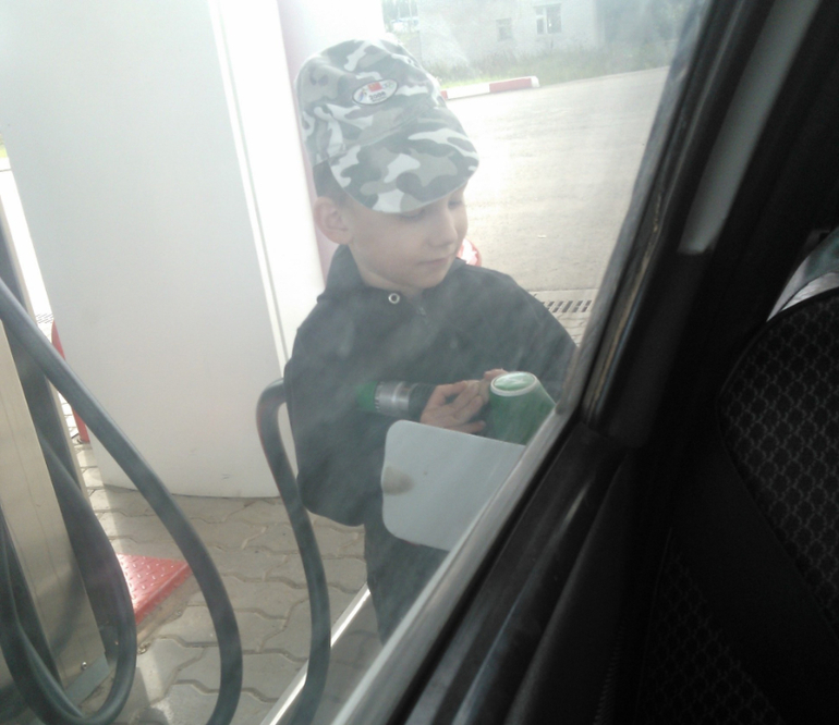 Камиль. Растём )))На заправке папа иногда доверяет Камилю ответственные дела.