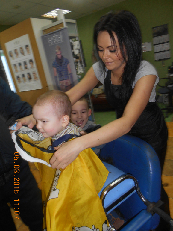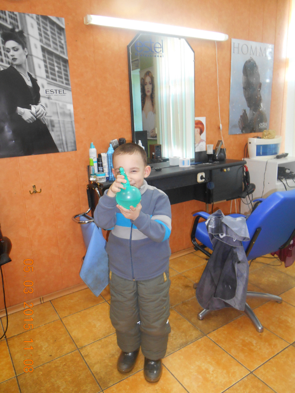 Эмильчик5 марта 2015г., незадолго до нашего двухлетия, мы постригли Эмиля в первый раз. Волосики у него, как и у Камиля, начали расти поздно и реденькие. А к 2 годам уже стал лохматенький ))). Первый раз пошли стричь его в парикмахерскую.