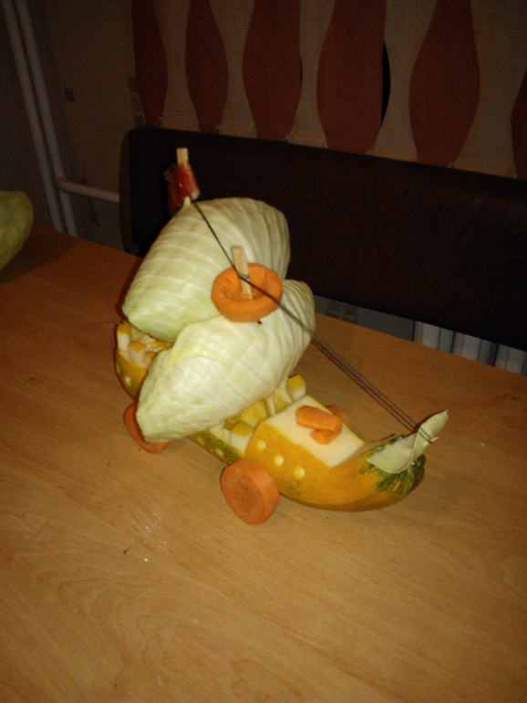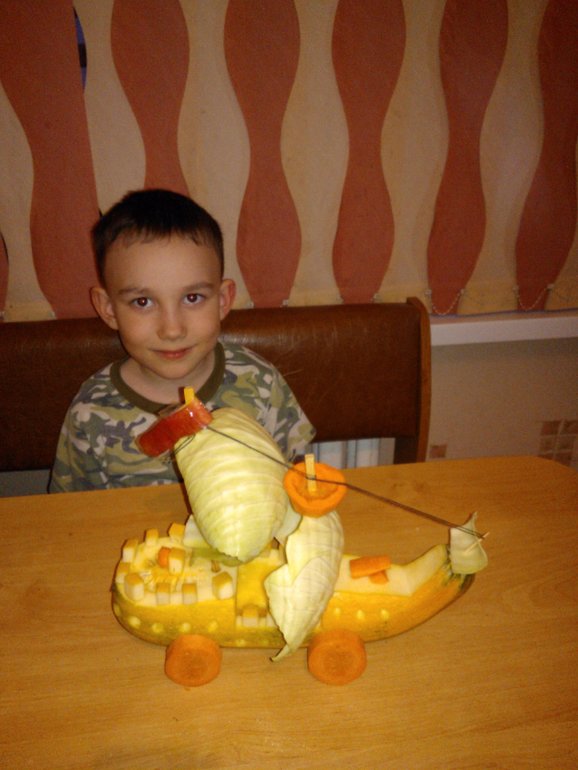 Искали идеи в интернете, Камиль выбирал. Разных шишечных мишек и т.п. даже не рассматривал. Сначала захотел делать паровоз. Потом ему понравился корабль.