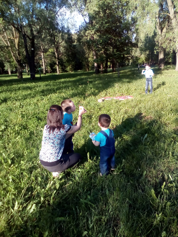 Выбрали наш парк. Дети бегали и норовили разбежаться в разные стороны.