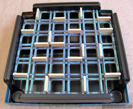 Я долго ходила вокруг этой игры, люблю немецкие настолки за оригинальные игры и изумительное качество. Останавливала цена, но когда я ее увидела со скидкой 50%, то "не выдержала душа поэта"..)) и игра оправдала все ожидания. В первую очередь она на внимательность и память. Для того чтобы выиграть нужно собрать три жетона, а добираться до жетонов приходится по "невидимому" лабиринту. Комплект состоит из жетонов, игрового поля, фишек магнитов, шариков-магнитов, а также сетки и кучки деревяшек для составления лабиринта. Вначале игроки делают лабиринт - на данном этапе можно варьировать сложность игры - можно придумать легкий лабиринт, если играете с детьми 5-7 лет, а можно и сделать "непроходимым" если играют дети старшего возраста или взрослые.