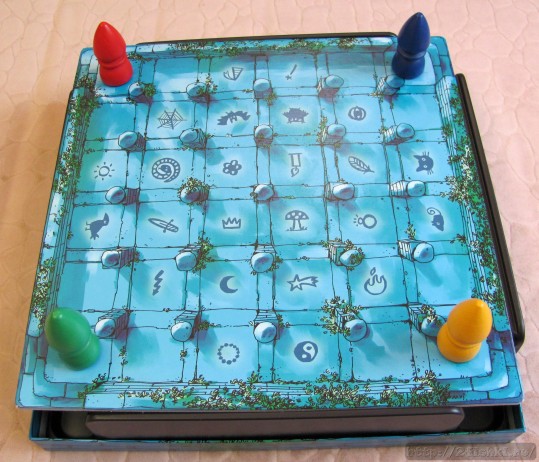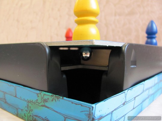 Если ваша фишка попадет на перегородку лабиринта, то шарик-магнит под полем падает и вы вовращаетесь на свою стартовую клетку. Выигрывает тот, кто быстрее дробереться до фишки. Далее выкладывается вторая фишка и т.д.