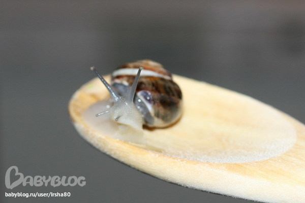 Случай из жизниКонечно,я хочу свой дом. И переодически даже хочу сад и куриц. На детей тоже находит - то им кошечку, то собачку, то птичку, то рыбку. Весной мы собирали гусениц и ждали бабочек - выростали одни ночные мотыльки - страшные и пугливые. И вот нашла я на улице нам новый объект за наблюдениями. Знакомтесь - улитка Улюулю.