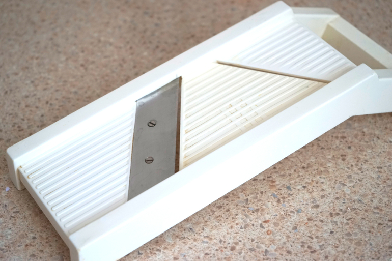 Если есть вот такая терка, можно воспользоваться теркой - шинковкой. Капуста будет очень красиво и тонко нашинкована, если нет такой шинковки, то придется очень постараться! :)) Нарезка в салатах - 50% успеха вашего блюда! ))