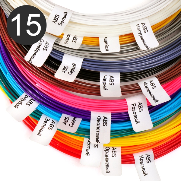 2) Пластик для 3D-ручек ABS 15 цветов (микс) по 10 метров. (в наличии)