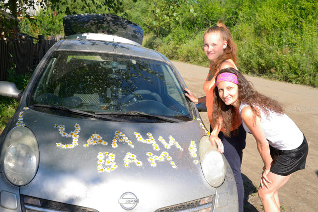А это мы утром собрались домой, и Кристинины друзья выложили нам пожелание на капоте))) Так приятно...)