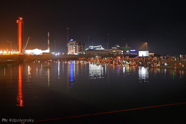 После обеда муж поехал на съемку, и мы за ним. Погуляли по Сочи, в 9 вечера пошли смотреть как запускают в реку светящиеся фонарики.