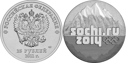 Предлагаю монеты Сочи 25руб. 2014г.в. (Лучик, Горы)