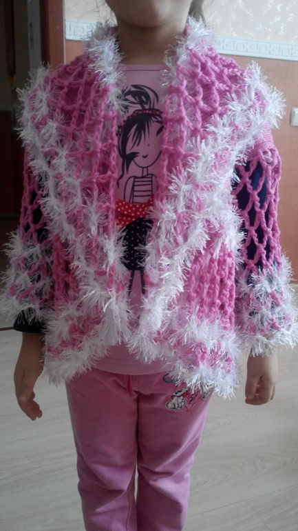 Накидка вязаная НОВАЯ р-р 2-3 года. Цена 150руб.