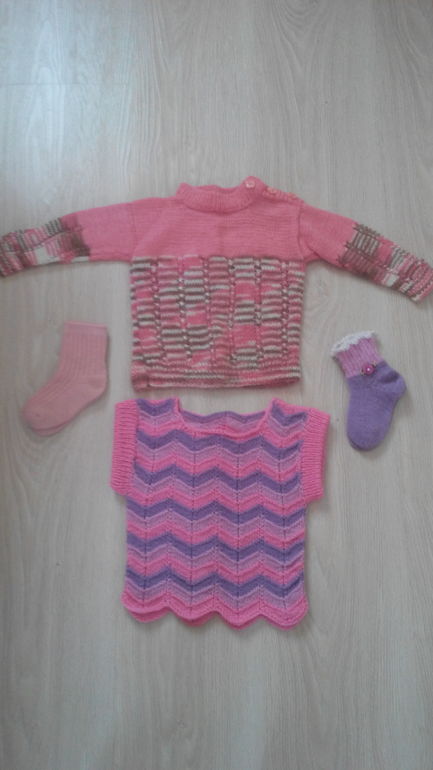 Кофточка + безрукавка + две пары носочков. Ручная работа. Состояние идеальное. За все 200руб.
